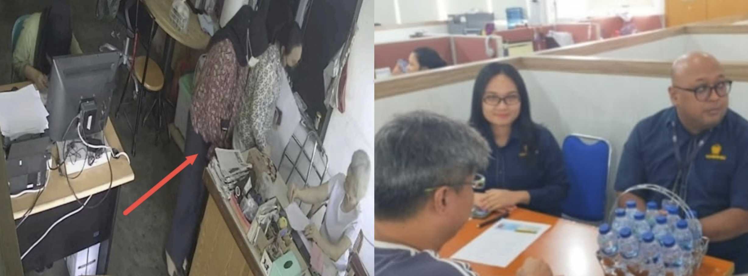 Saat tempat usaha Herianto didatangi dan bertemu orangtuanya yang berusia 80 tahun (kiri) dan Herianto saat bertemu dua AR KPP Pratama Pematang Siantar, Marni Agustrya serta Andhi Setyono.