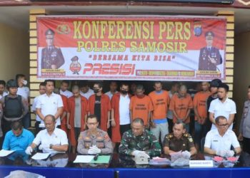 PENA24JAM. COM, SAMOSIR - Polres Samosir berlokasi Jalan Sisingamangaraja, Kecamatan Pangururan, gelar pemaparan sejumlah kasus yang tuntas ditangani, Rabu (31/5/2023). Pemaparan kasus tersebut langsung dipimpin Kapolres Samosir, AKBP Yogie Hardiman didampingi Kasat...
