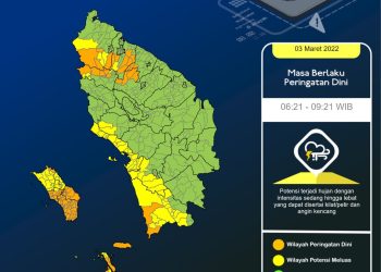 Read morePENA24JAM, SIANTAR - Peringatan dini cuaca wilayah Sumatera Utara tertanggal 3 Maret 2022 dan berlaku dari jam 06.21-09.21 WIB, sebagian akan diguyur hujan seharian. Dengan intensitas sedang, lebat, yang disertai kilat atau...