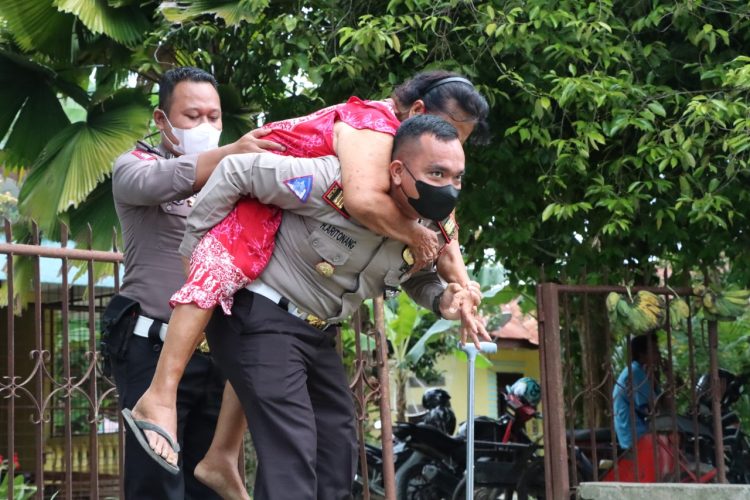 Perempuan lansia tersebut digendong sebagai bentuk rasa empati Kasat Lantas terhadap warga yang sudah tidak mampu lagi untuk berjalan dan menggunakan alat bantu berupa tongkat.