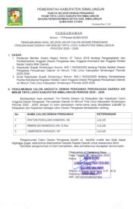 Diketahui ketiga peserta yang lolos, Rinton Parulian Damanik dan saat ini menjabat Kepala Bagian Ekonomi pada Pemerintah Kabupaten Simalungun. Sekaligus mantu Bupati, H. Anton Achmad Saragih.