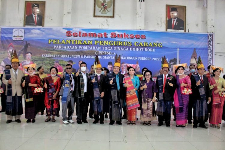 Parsadaan Pomparan Toga Sinaga dohot Boru (PPTSB) gelar pelantikan untuk pengurus cabang Kabupaten Simalungun Parsidomu Siantar Simalungun periode 2022-2026, Sabtu (19/3/2022) sekira jam 11.00 WIB.