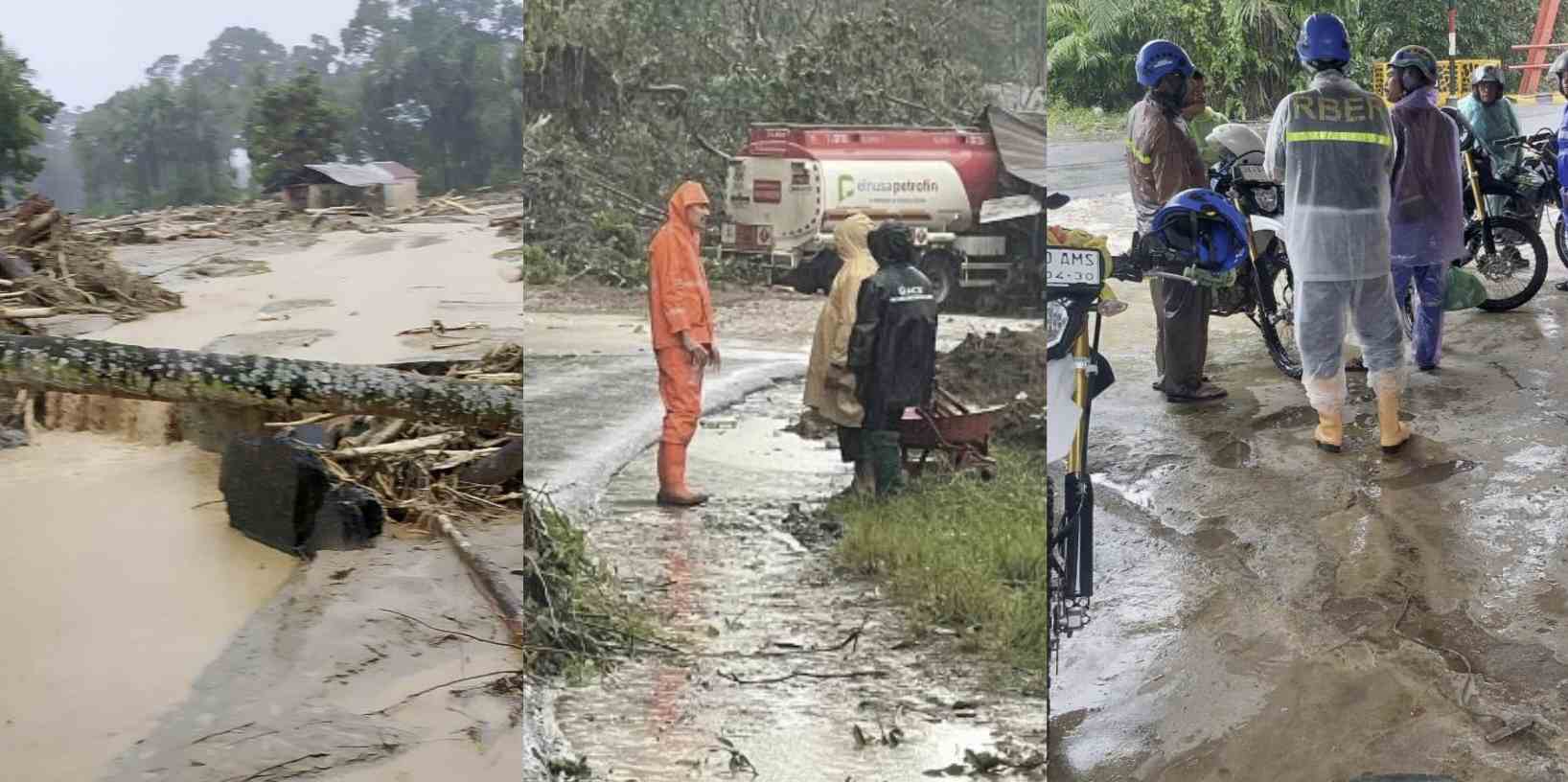 Kondisi ini tidak menghentikan langkah petugas. Karena jalur tidak dapat dilaluibroda empat, tim melanjutkan perjalanan menggunakan motor trail untuk menembus lintasan berlumpur serta pepohonan yang terbawa arus dari kawasan perbukitan.